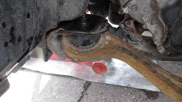 Primero romper el perno delantero 19mm con una barra del triturador. Tenga en cuenta todas las grietas en los casquillos, debido para el reemplazo.