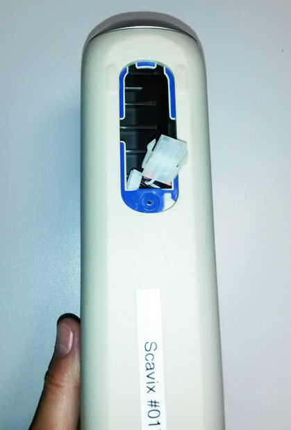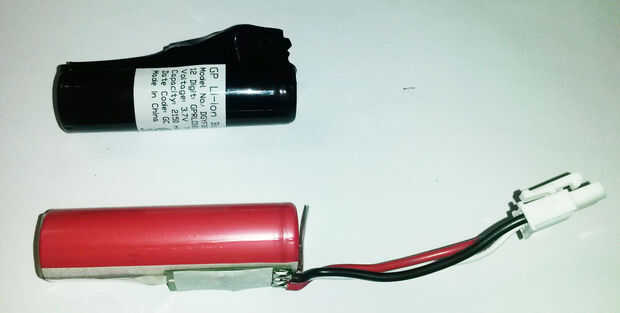 La batería se envuelve en algún plástico aislante negro. Use un cuchillo para cortar y quitar el plástico. Ser suave, usted puede utilizarlo más adelante otra vez a la batería nueva.
