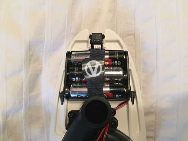 Después de haber asegurado las pilas con el Velcro, usted puede voltear la bandeja a la parte delantera.