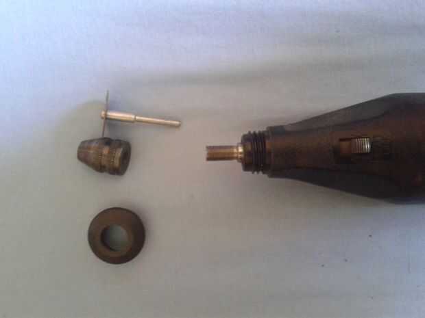 Desmontaje es muy sencillo Desenrosque el mandril y el collar de bloqueo superior. El resto de la caja se mantiene unida por 4 tornillos, que éstos tenían una cabeza de torq y una ranura recta, una vez retirado que el caso apenas levanta aparte