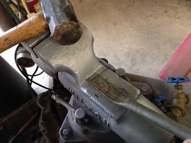 • Yunque: tenía acceso a un vicio que facilitó el proyecto, pero su martillo puede usarse también con un borde de acera conveniente o una pieza de acero pesado para colapsar la tubería y las manijas de la curva.