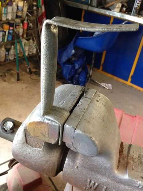 Determinar la altura necesaria para los lados de la manija, asegurándose de dejar suficiente exceso para poder doblar hacia fuera los tabuladores para los orificios perforados. Una vez que la altura es determinada y marcada, utilizando los métodos que usó para las primeras curvas, doble las lengüetas hacia fuera a 90 grados para hacer las lengüetas de montaje. Asegúrese de que la distancia de altura es igual en los dos extremos del asa. Una vez hecho esto, la manija del centro y marque la ubicación de los orificios de montaje y perforar al tamaño adecuado.