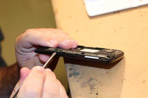 Para separar la sección segunda, comenzar por la inclinación de la herramienta de palanca para pasar el "labio" de la pantalla.