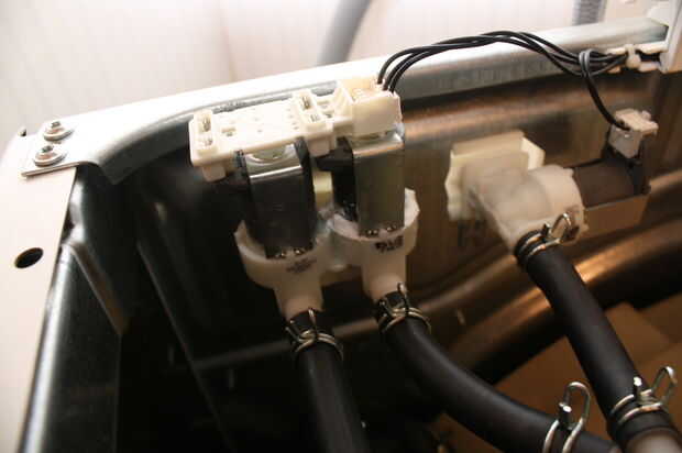 Finalmente, me quité la tapa y vio que se fuga la válvula de entrada de agua fría. Cuando se está mirando la parte delantera de la máquina, la válvula de frío está a la izquierda. También tiene dos cabezas de la válvula.