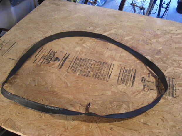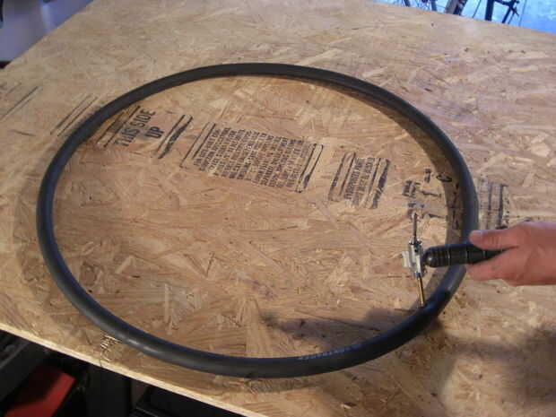 2. inflar el tubo lo suficiente para que tome forma. Esto no significa para llenar todo el camino. Desea aire suficiente por lo que es más fácil trabajar al poner el neumático en.