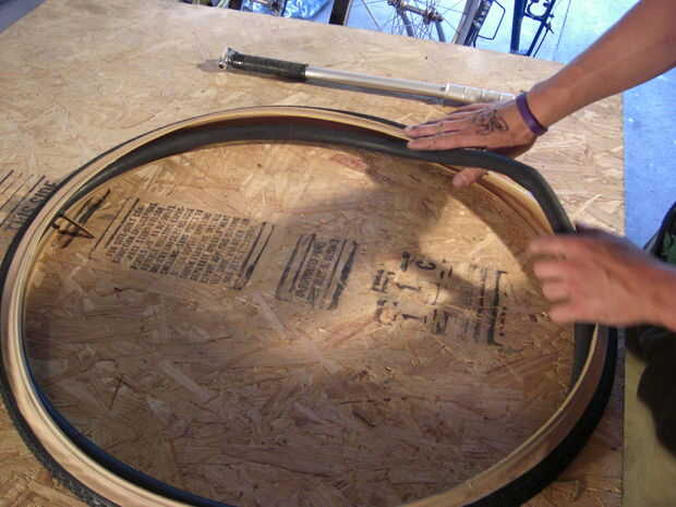 7. hacer seguro que el tubo y un lado de la llanta son totalmente en el borde.