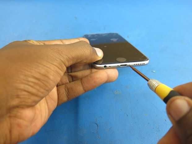 • Vuelva a colocar los dos tornillos Pentalobe en la parte inferior del iPhone al lado del puerto de rayo.