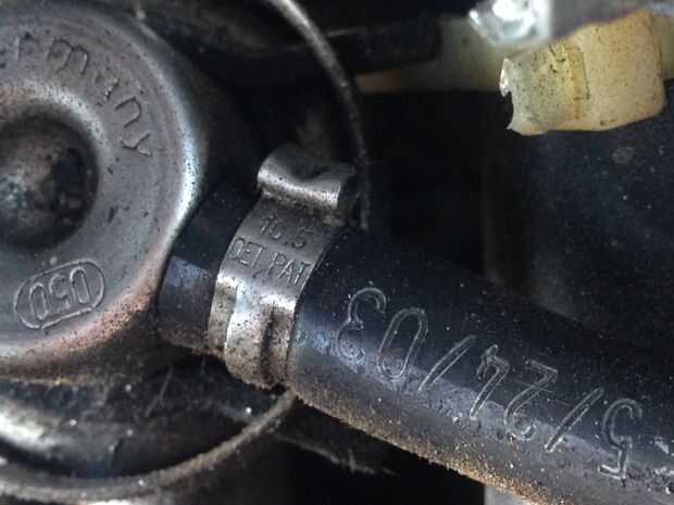 En este vehículo es con abrazadera en la manguera de vacío con un solo uso abrazadera de la manguera. Inserte el destornillador en el bucle de la abrazadera y a su vez a ampliar y aflojar la abrazadera. Después de aflojar la abrazadera de sacar la manguera de la aspiradora y quite la abrazadera.