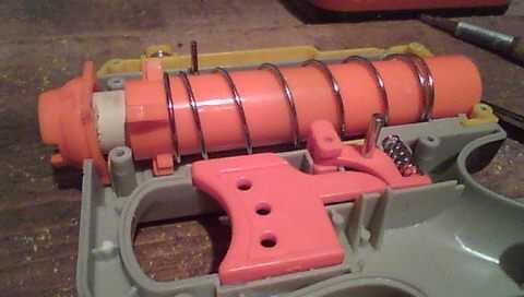 Ahora se encuentra en la recta final! Asegúrese de que todo esté alineado y en su lugar apropiado y luego vuelva a montar la pistola. Si tienes problemas Juntándolo todo nuevo consulte la imagen.