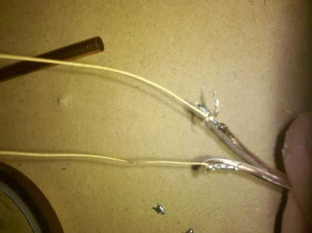 una vez que todo se suelda doblar las puntas de enfrente de direcciones URL a los cables como se muestra a continuación