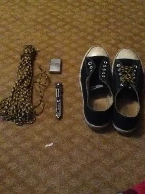 Para todo este proyecto se necesita: 1 zapatos (puede ser cualquier tipo he utilizado causa de converse se veían cool!) 2-paracord (2 piezas a la misma longitud de un cordón regular pero se reducirán cuando sea necesario) 3-cuchillo/tijeras 4-lighter para quemar los extremos de la 5-tiempo de paracord