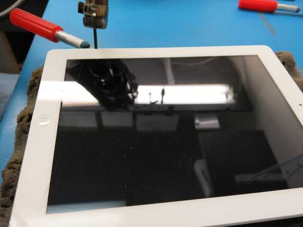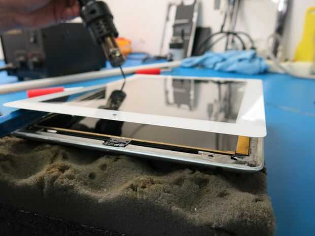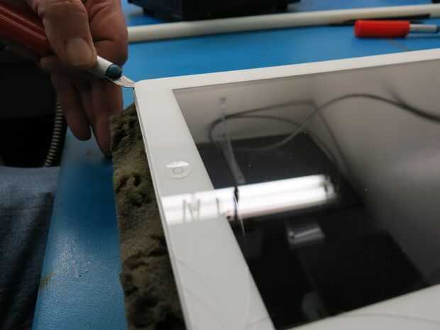 3. al aplicar calor, cuidadosamente abrir el digitalizador con el raspado de herramienta de metal.