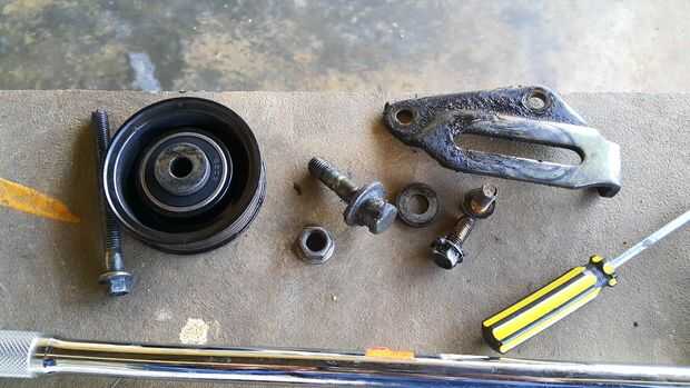 Tenga en cuenta que el soporte de la polea tensora de aire acondicionado debe salir así.
