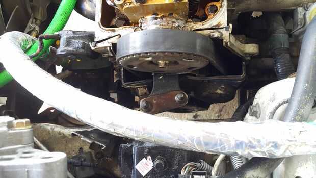 Reemplazo del motor bomba de agua y tensor de la polea (Honda D15B Civic). (5 / 10 paso)