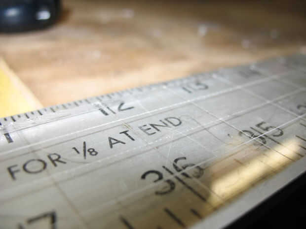 Puede que necesite ajustar este paso ligeramente para dar cabida a las herramientas tiene disponible para usted. Para marcar la superficie del vidrio, la tira de plexiglás fue fijada a una pared "T" como se muestra a continuación. Entonces usando un cuchillo y una plaza de uso general, las marcas fueron creados. La pared seca "T" utilizado tenía fraccionarias pulgadas marcadas sobre la misma, por lo que fueron utilizados como una guía sobre cómo crear las marcas. El primer paso en el vidrio de la marca es ir por el lado más corto del plástico, marcado en intervalos regulares a lo ancho. A continuación, las marcas fueron creadas a lo largo. Estas marcas a lo largo de segundo podrían omitirse si coche extra se toma en el siguiente paso si usted quiere hacer su plástico como marca-libre como sea posible. A continuación se muestra el producto final. Este paso es una pauta general. El proceso seguramente será diferente. Si están marcando los agujeros para el 87, usted estará creando 29 filas. Esto funciona a aproximadamente 1 3/8 pulgadas entre grupos si a partir de 1 1/2 pulgadas desde el extremo.
