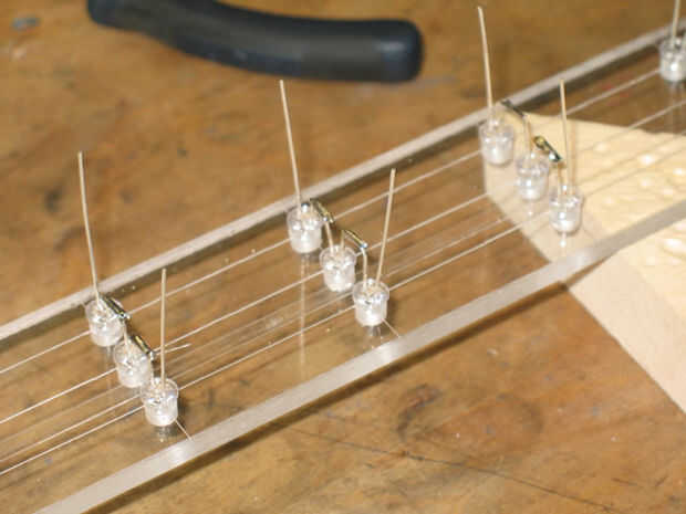 construí esto para un proyecto de arte de la escuela comparar las similitudes y diferencias entre arte y ciencia. Fue inspirado por el trabajo de Walter Giers.Las tres tiras de LEDs y otro anillo en el medio, todos responden a la música que viene des
