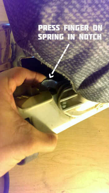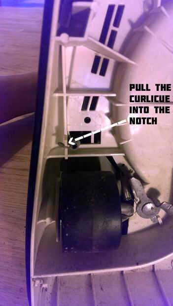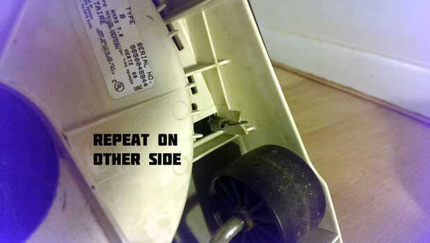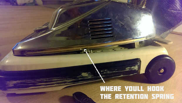 Mantener un dedo en el resorte en el retén, se voltee la aspiradora.