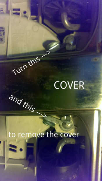 Gire las dos lengüetas metálicas que sostienen la tapa en su lugar. Retire la cubierta.