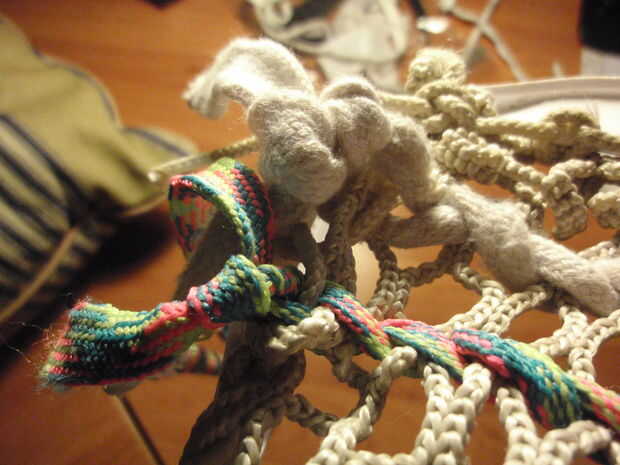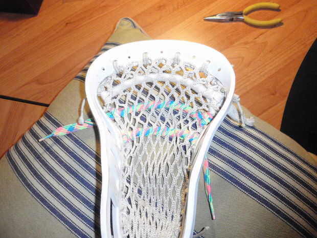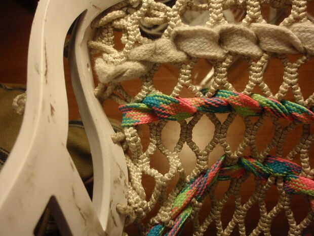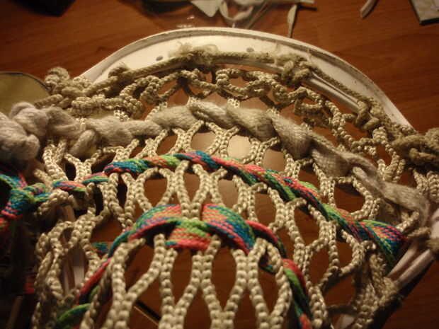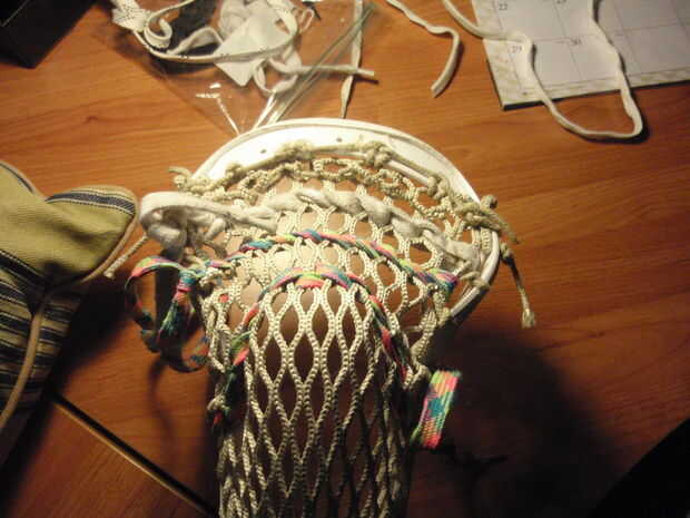 This is another stick that I strung. IM no está seguro si va a funcionar, porque este es viejo y una paliza, y fue también suciedad barato para comenzar con. Las primeras cuatro fotos son del y el resto de la después. Este palo tenía un trabajo de cadena muy extraño (que puede verse en la primera foto), con un método totalmente diferente sosteniendo las cadenas de tiros a la malla. Acabo de hacer surge la baja normal, superior desciende a través del mismo agujero, todo el camino a través de la cabeza.