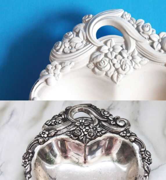 Recientemente fui "venta de garage" con mi mamá, y nos topamos con una tienda de antigüedades que se cierre. El dueño estaba muriendo para deshacerse de su mercancía, y básicamente morí de emoción. Thrifting y tiendas vintage es mi pasatiempo favorito. Me encanta todo sobre él. Las pilas más de basura, los tesoros más escondidos allí son de encontrar. Mi mamá y yo se acabó con un montón de accesorios de cocina plateado vintage, algo de él más allá de reparación. Estas piezas fueron pidiendo ser rehabilitados de alguna manera. La mayoría de ellos tenía esa decoración ornamental, de flores alrededor de los bordes del plato. Es muy típico de la plata decoración plateada que ves en la frugalidad almacena estos días y un poco de fecha si no puede ser pulido para arriba.