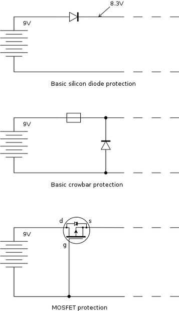 Que originalmente añadido un circuito de protección de la palanca (ver diagrama) preferencia perder 0,7 voltios a través de un diodo de la serie, pero luego descubrió este circuito mosfet algo ingenioso, que es lo que acabé utilizando. Las condiciones sólo reales para lo mosfet son que debe ser modo de realce, P-type, capaz de saturar en el voltaje de la batería y tienen una baja RDS. Se muestra el coste £1 además de p & p. O puede usar un diodo de la serie con una tensión baja, como un tipo schottky o germanio. Todo depende de lo que tiene lo que usted puede permitirse. He ilustrado 3 todas las variantes. He demostrado un diodo normal para el circuito de la palanca, sino un diodo schottky comenzaría a realizar una tensión inversa mucho más rápidamente. (Ver último paso - notas de la operación, de como funciona esto)