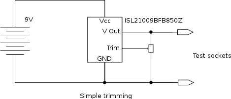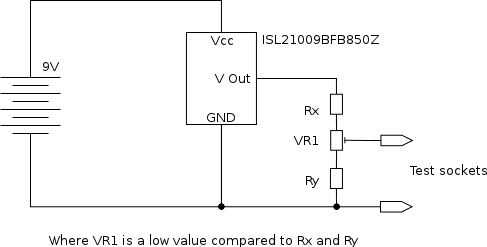 Si tienes acceso a un medidor muy preciso (mejor que 0.01%), puede en teoría mejorar la exactitud de esta referencia, o establecer alguna tensión de su preferencia. Conectar un potenciómetro de coeficiente de temperatura bajo (Intersil se recomienda utilizar un potenciómetro digital como este, pero se necesita un bus I2C para ajustarlo. No dicen qué valor utilizar.) con el limpiaparabrisas conectado a los dispositivos de ajuste pasador (pin 5), de un extremo a Vout y una toma de tierra. Esto da un margen de 2,5% de ajuste. Mediante el uso de un dispositivo de precisión multivuelta debería poder ajustarlo con precisión. Para ajustar la tensión dada por el divisor potencial he utilizado en este proyecto, uso una alta estabilidad preset de bajo valor conectada entre las dos resistencias y tomar la salida de su limpiaparabrisas. Si vas a ir a este extremo, así puede búfer la salida utilizando un amplificador operacional de precisión.
