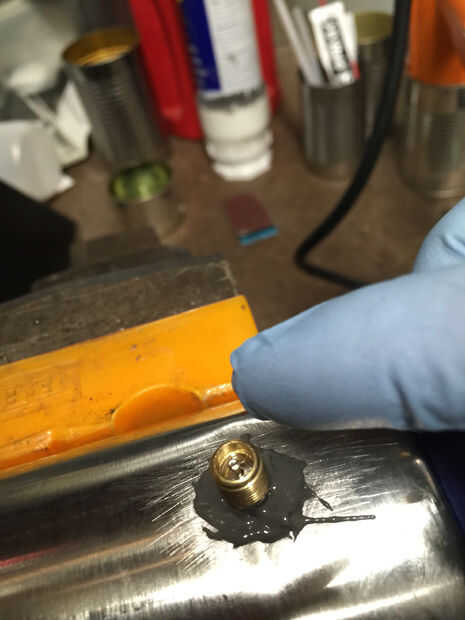 Limpie el área alrededor del agujero y la parte inferior de la válvula. Usé alcohol mineral.