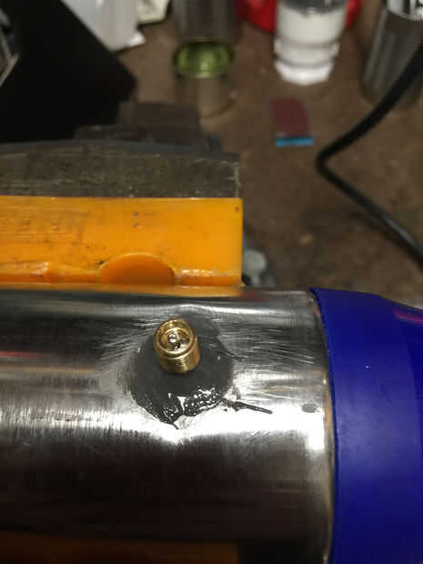 Instale la válvula en el orificio y gire levemente las válvulas para asegurar que la válvula no tiene espacios en el epóxico. Tenga cuidado no epoxy en las roscas de la válvula de neumático. Usé la tapa de la válvula que venía con el paquete de válvulas y se aseguró de que no se adhieren a la tapa de la válvula.