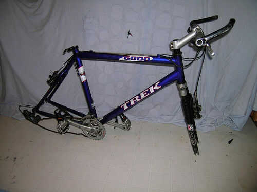 Limpie la fama bien por lo que permanecerán en las pegatinas. Inicialmente, limpié el marco con WD-40 pues yo utilizaba una solución de limpiador de ventana para eliminar cualquier aceite y asegúrese de que las etiquetas bien adhirieron. Usé un removedor de residuos de cítricos basado etiqueta de limpiar las pegatinas de las horquillas y el protector de vaina.