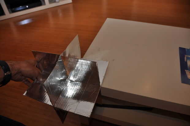 la primera imagen muestra el proceso de diseño y tengo un pdf de ese pic en el siguiente paso. (Mucho más fácil ver los detalles en el pdf)Diseño de un reflector exóticos para cocinar solar sin vigilancia. Su diseño podría conseguir utilizado en tod