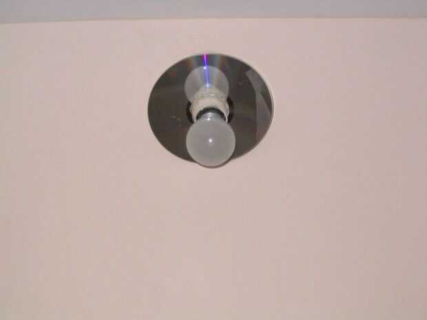 Apenas resbale el CD en el interior de lo portalámparas. Cola no es necesario. Fijar la bombilla en el soporte