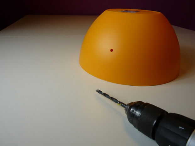 - Perfore un agujero en el tazón de fuente. Taladro del mismo tamaño como el diámetro de la válvula.