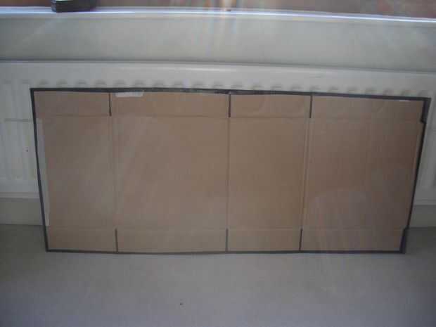 Se aplican electricistas cinta, cinta de envolver festivos plateada o una cinta de plástico o metálica similar alrededor de los bordes cortados, incluyendo las ranuras y lengüetas, doblar sobre el borde y alisar en ambos lados. Tenga cuidado de que el borde superior que será hacia la habitación aseada. Lo ideal es utilizar cinta que es plata para coincidir con el material del reflector o bien elegir un color para que coincida con la pared detrás del radiador.