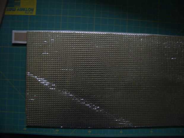 Para un reflector no película, poner cinta de doble cara todo el camino alrededor de los bordes de la cartulina dentro de la cinta de ribete y también poner alrededor de los 3 lados de cualquier ranuras. Poner unas tiras diagonal en el centro del panel también. Luego retire todo el papel del forro de la cinta y presione el material del reflector sobre el mismo. Si el panel tiene ranuras, recorte el material del reflector de la parte posterior donde cubre. Por otra parte, sólo básicos alrededor de los bordes. Puede que necesite pedir prestado una grapadora de oficina destinada gruesas pilas de papel que el promedio nacional.