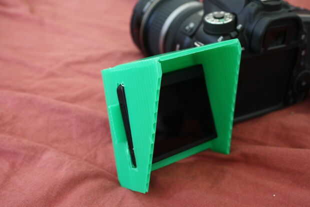 Mi cámara es una Canon, así que diseñé alrededor de eso. Creo que las dimensiones funciona para todos los modelos de Canon con la pantalla girada (T5i, T6i, T7i / 600D 650 D 700D 750D...). He creado algunos modelos y elegí para presentar aquí la versión más simple aunque he hecho algunas otras versiones que creo que todavía no terminó allí.