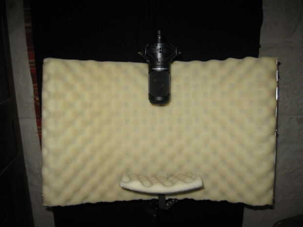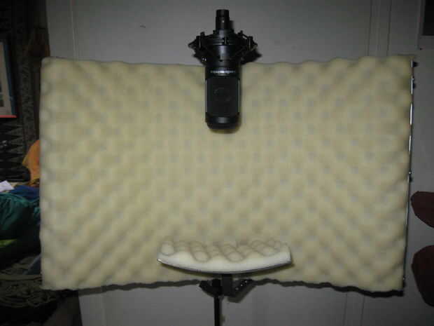 Un micrófono de grabación funciona mucho mejor si utilizas un filtro Pop delante del micrófono y un reflejo detrás del micrófono. El reflexión el filtro bloquea sonido rebotando en la parte posterior de la distorsión crear micrófono y molesto transit