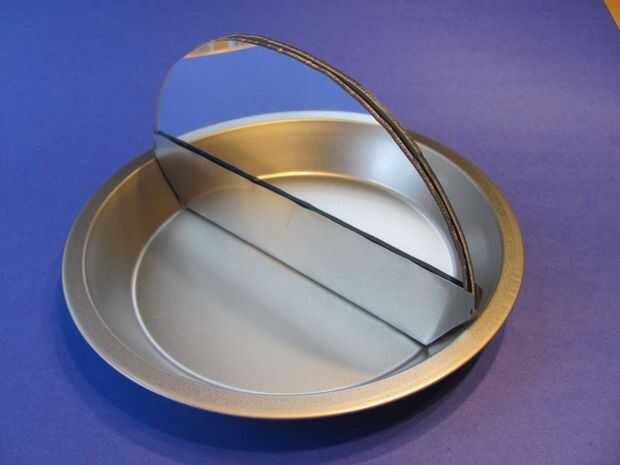 Los espejos dividen la tartera que proporciona la oportunidad para dos diferentes sabores de pastel, uno en cada mitad. En este caso manzanaycereza.