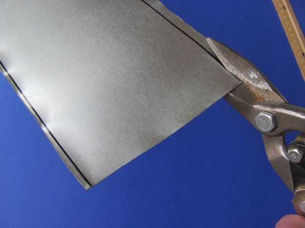 ASEGÚRESE DE QUE LOS CORTES DE METAL SON LIMPIO Y CONTINUO PARA QUE NO NO 'ASTILLAS' RESTANTES EN EL BORDE DEL METAL DE HOJA. IF NECESARIO USO PAPEL DE LIJA O ESMERIL PAÑO PARA ASEGURAR UNA VENTAJA SEGURA.