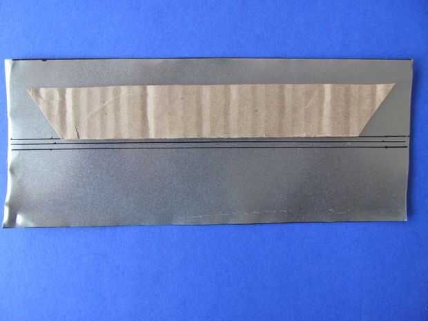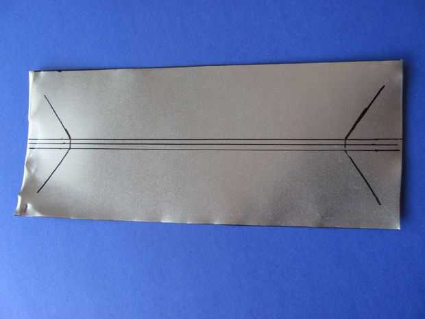 Siguiente la plantilla de cartón del pastel pan sección y alinear en la línea más alejada del centro y trazar en la chapa. Hacer esto por encima y por debajo de la línea central (essentiall para cada lado del soporte del espejo doblado).