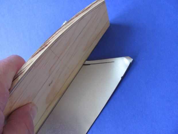 Para doblar para arriba los lados del soporte del espejo toman el 1/4" espesor material de desecho (madera contrachapada) y alinean en la línea de centro sobre la chapa. Mientras presiona hacia abajo firmemente, doblar la chapa a cada lado de 1/4" material.