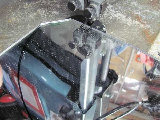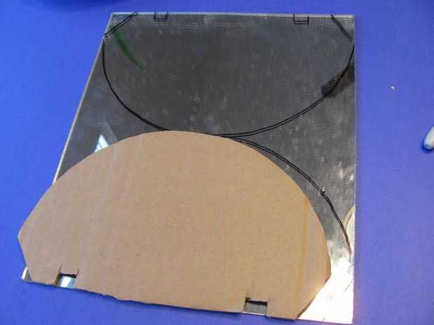 Corte la plantilla de espejo de la cartulina y se usa para trazar el patrón en el stock de acrílico del espejo. No olvide voltear la plantilla al marcar el patrón para el segundo espejo para que los espejos se alinean en el caso de la patern no es simétrica. Cortar los espejos con una sierra de banda o afrontamiento.