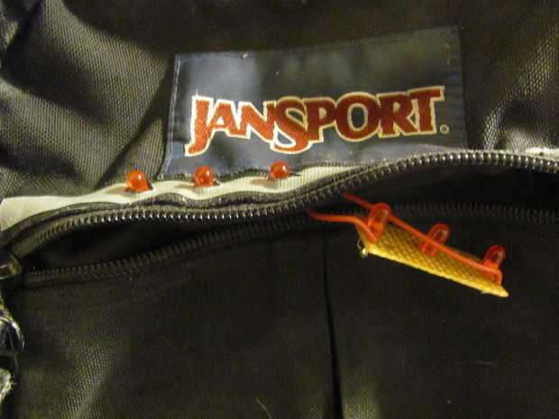 se trata de un bolsillo oculto que puede poner cosas valiosas en si usted está preocupado acerca de personas robar cosas de la mochila.Lo hice esto incluye costura. Se pueden usar pernos de seguridad en su lugar aunque.Y por favor no utilice esta par