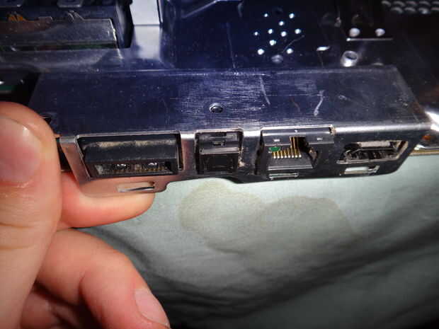 Los puertos para las entradas también se unen a la Asamblea de la parte inferior. Siga adelante y los quite y apartarlas.