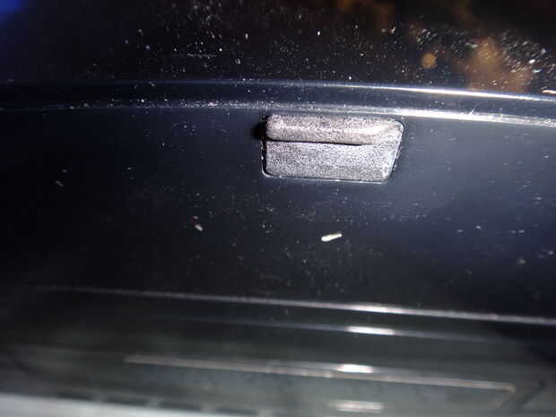 En la parte superior de la unidad hay una pestaña de goma cubierta por otra etiqueta de garantía.
