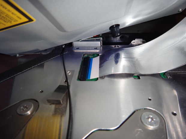 Por debajo del jugador es un cable de cinta. Suavemente llegar a bajo y desconecte este cable y apartar el reproductor Blu-ray.