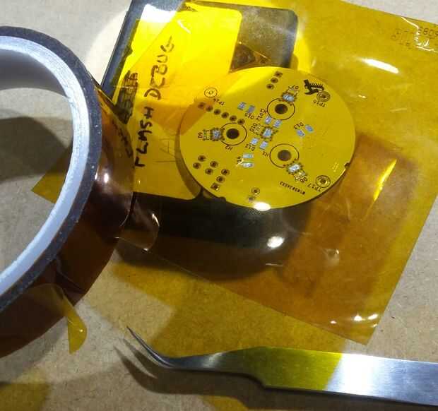 Colocar el PCB a algo que no se mueva cuando no quieres hacerlo. Sólo solía una losa de madera y una caja ESD toma la Junta Directiva, ya que hay ya algunos componentes en el otro lado. La losa de madera es pequeña, para deslizarse bajo el microscopio, pero lo suficientemente fuerte como para no moverse cuando no quiero que.