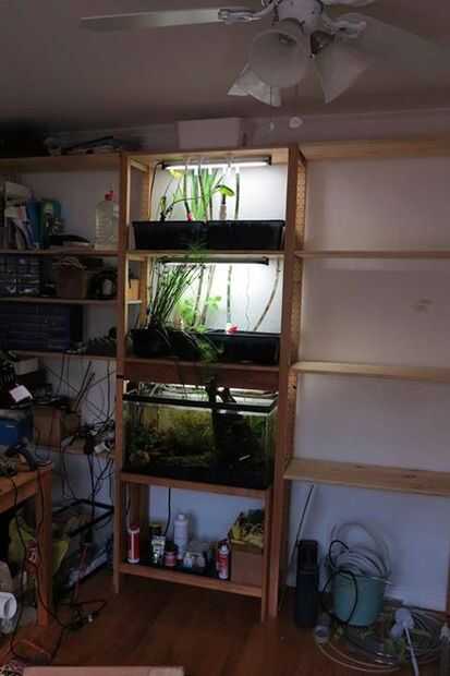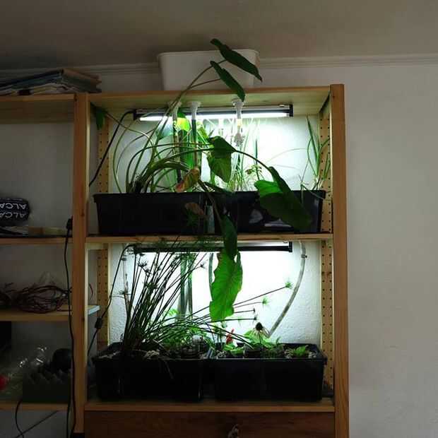 Acuaponia es un híbrido entre la hidroponía y los acuarios. En un sistema de acuaponia, un acuario repleto de peces producen amoniaco y otros desechos expulsados por los peces. Este desperdicio de agua aunque perjudicial para los peces es bueno eatin' para las plantas, por lo tanto, el agua se bombea fuera del acuario fuera creciendo camas donde esperan una comida reseca las plantas. Con la ayuda de bacterias nitrificantes, las aguas residuales se desglosan en nitratos útiles que se alimentan de las plantas a través de sus raíces. Esta agua residual así pasa por un filtro de plantas y el agua 'limpio' es reintroducido en el acuario.
