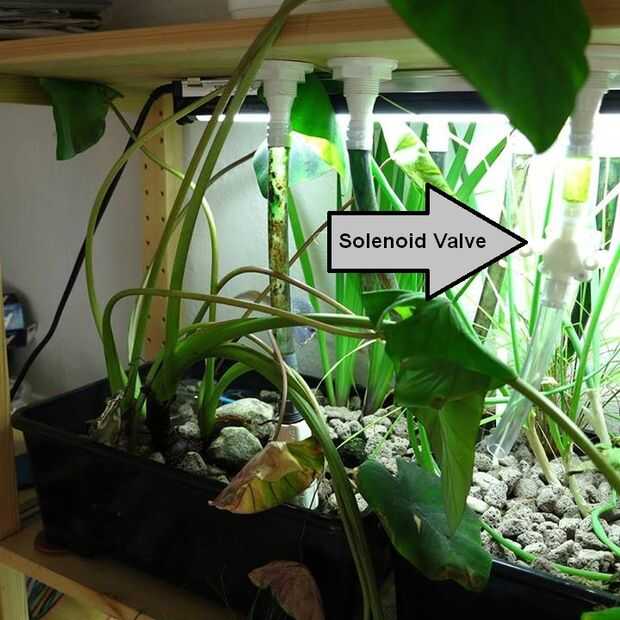 Para un sistema avanzado que puede utilizar un arduino para encender la bomba y el control que crecen camas obtiene agua girando en las válvulas de solenoide. En mi sistema utiliza una fotorresistencia para ver si el sol estaba arriba o abajo y encender el sistema adecuadamente. También utilicé las válvulas de solenoide para alimentar ciertas plantas menos que otros. (