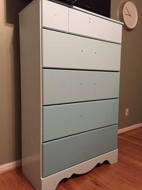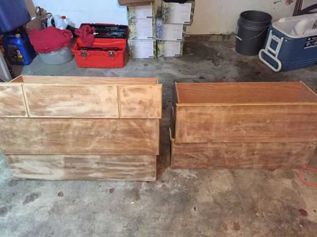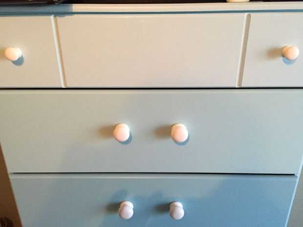 Otra cosa que me olvidé de hacer fue rellenar los agujeros del hardware antiguo. Pensé hardware sería estándar y podríamos encontrar reemplazos agradables usando los agujeros originales. No haga la asunción que hice. El hardware no es estándar, tapar los agujeros (utilicé masilla) y perforar nuevos para el hardware que desee. Llenar el hueco con masilla usando cuchillo hinchada completamente. Deje un montículo muy pequeño que es de plumas del agujero. 24 horas más tarde lijar al ras con la superficie del cajón. Repita durante anterior una vez más para obtener mejores resultados.