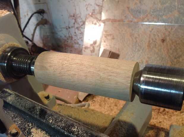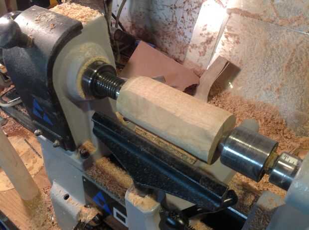 Encendí la pieza mi torno midi después de cortar el bloque a la longitud.